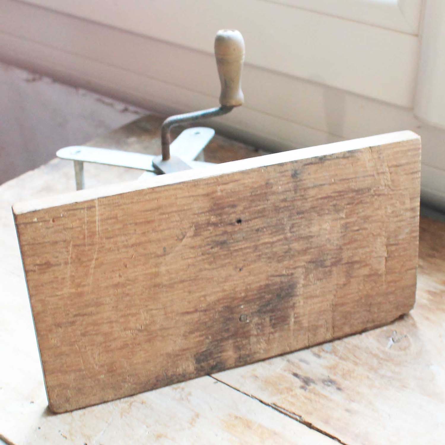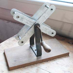 古い木&アルミ製の糸紬機。シルク用です。会社名等が入っています。古いものなので多少の傷、汚れがあります。