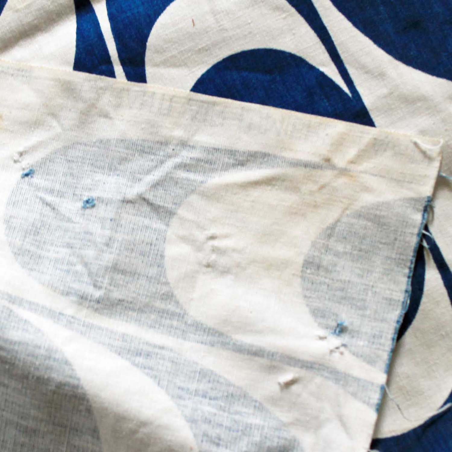 ヴィンテージの古いコットン布地。当時特有のデザインが素敵です。古いものなので小さな穴、汚れがあります。