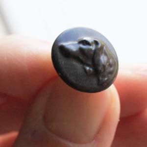 古いハンティングジャケット用の金属ボタン。デッドストックです。猟犬のモチーフが使われています。