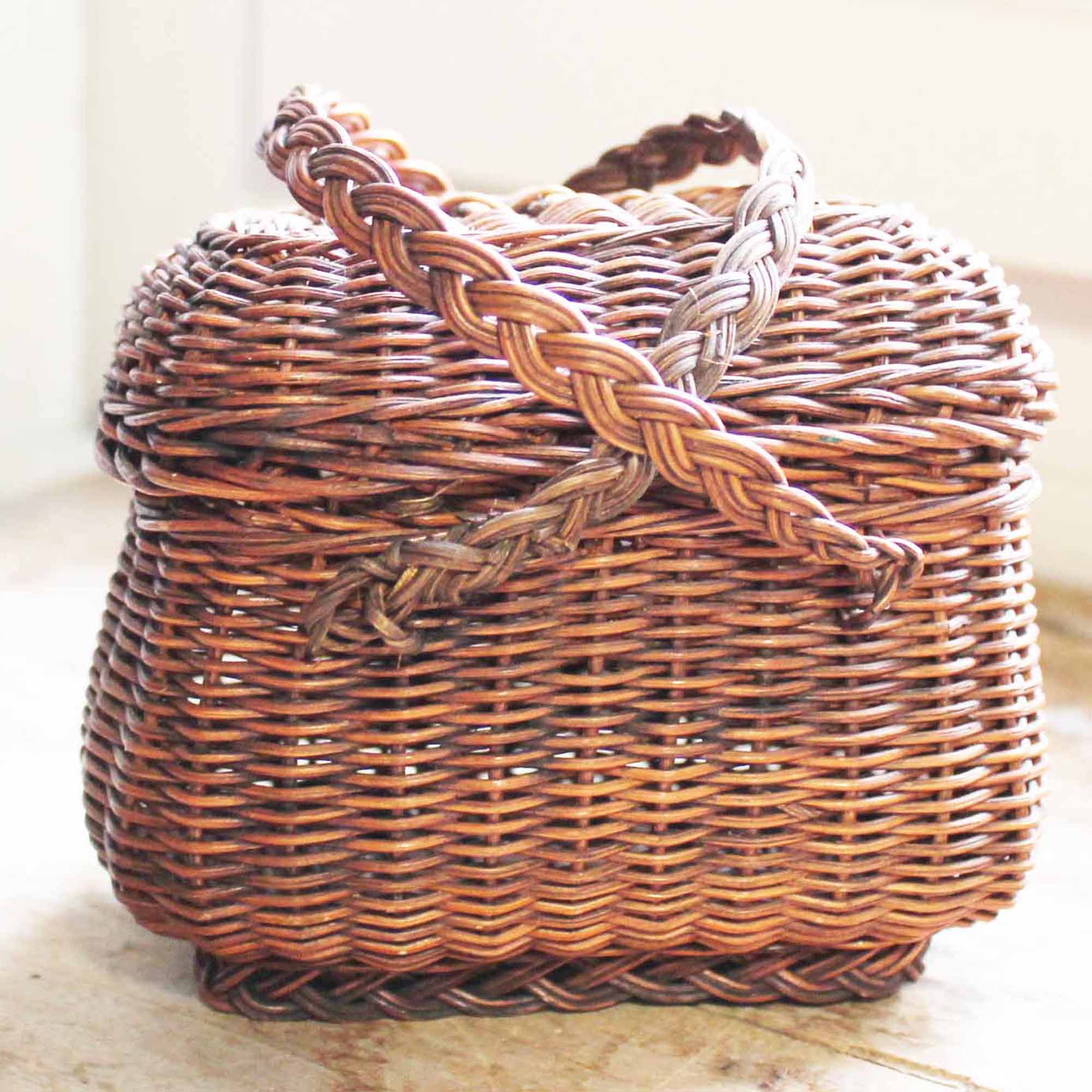 古い籐製のパニエ。 おもちゃ用の小さいものです。古いものなので多少の傷、汚れがあります。