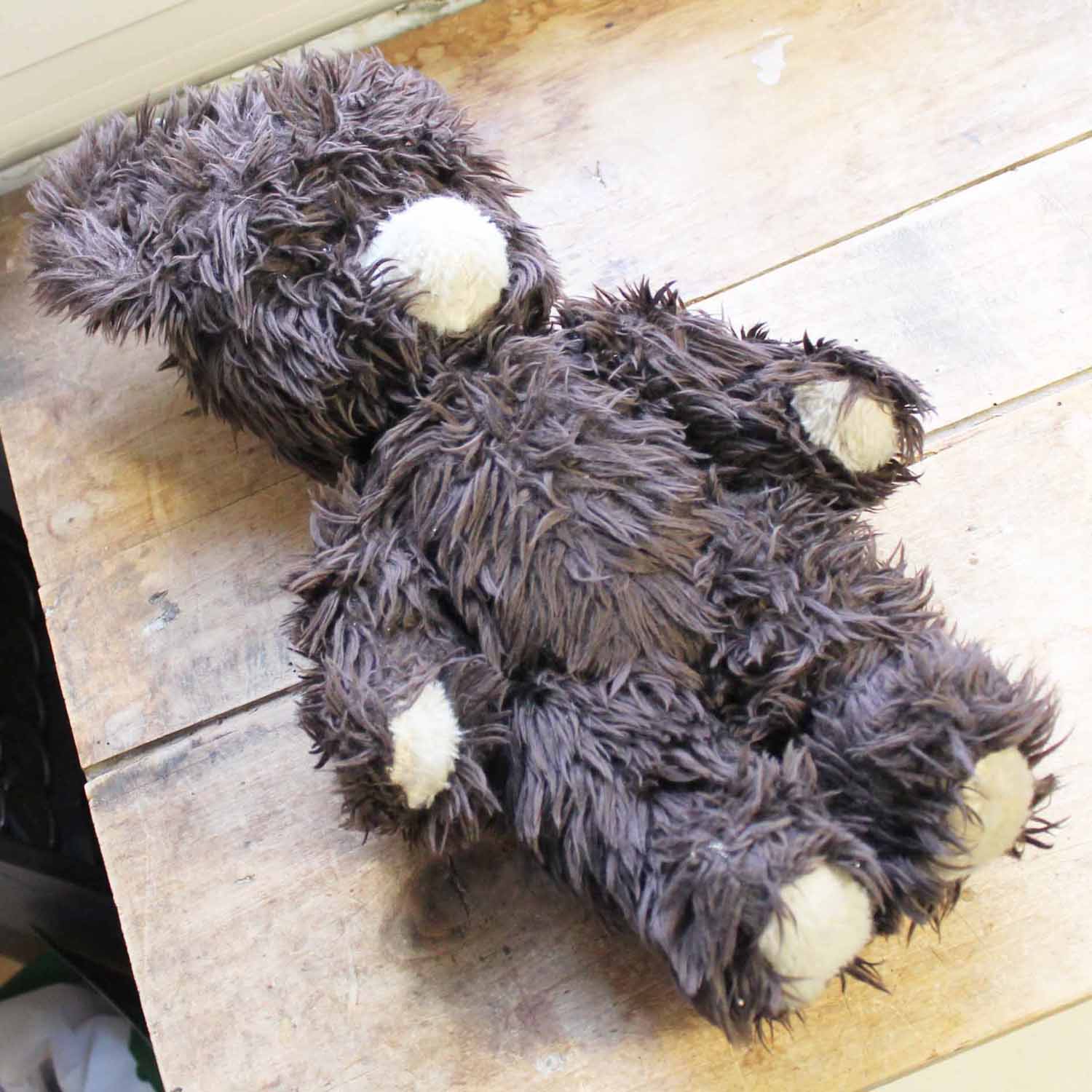 古いテディベア。目はガラスですが、中身は綿のようです。古いものなので多少の汚れがありますが、その他にダメージはありません。