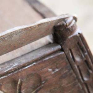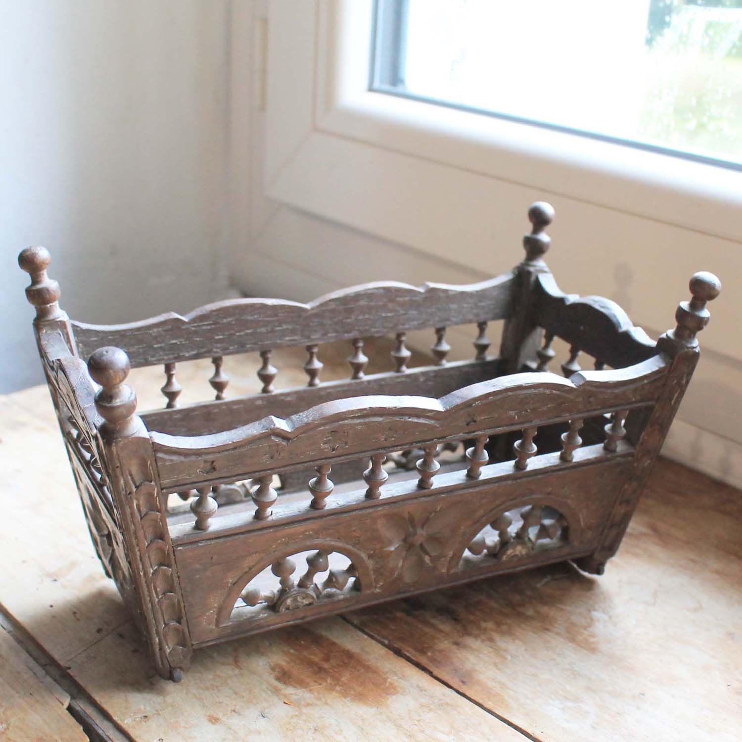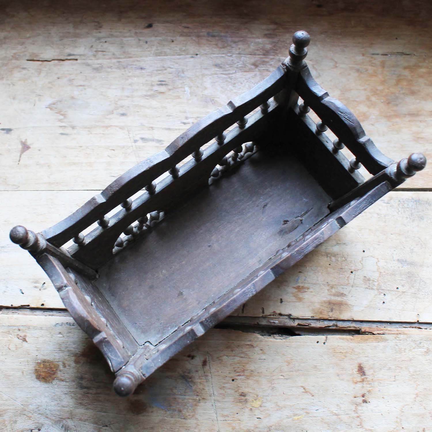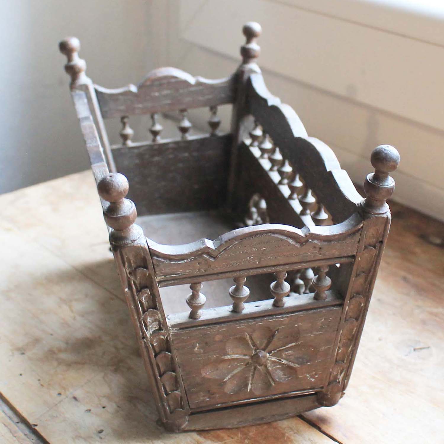 古い木製のおもちゃのゆりかご。ブルターニュ家具のものです。古いものなので多少の傷、汚れがあります。