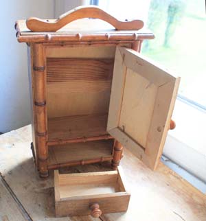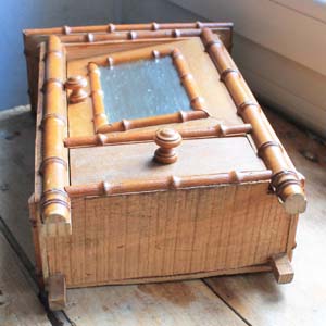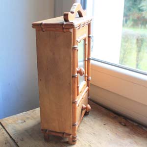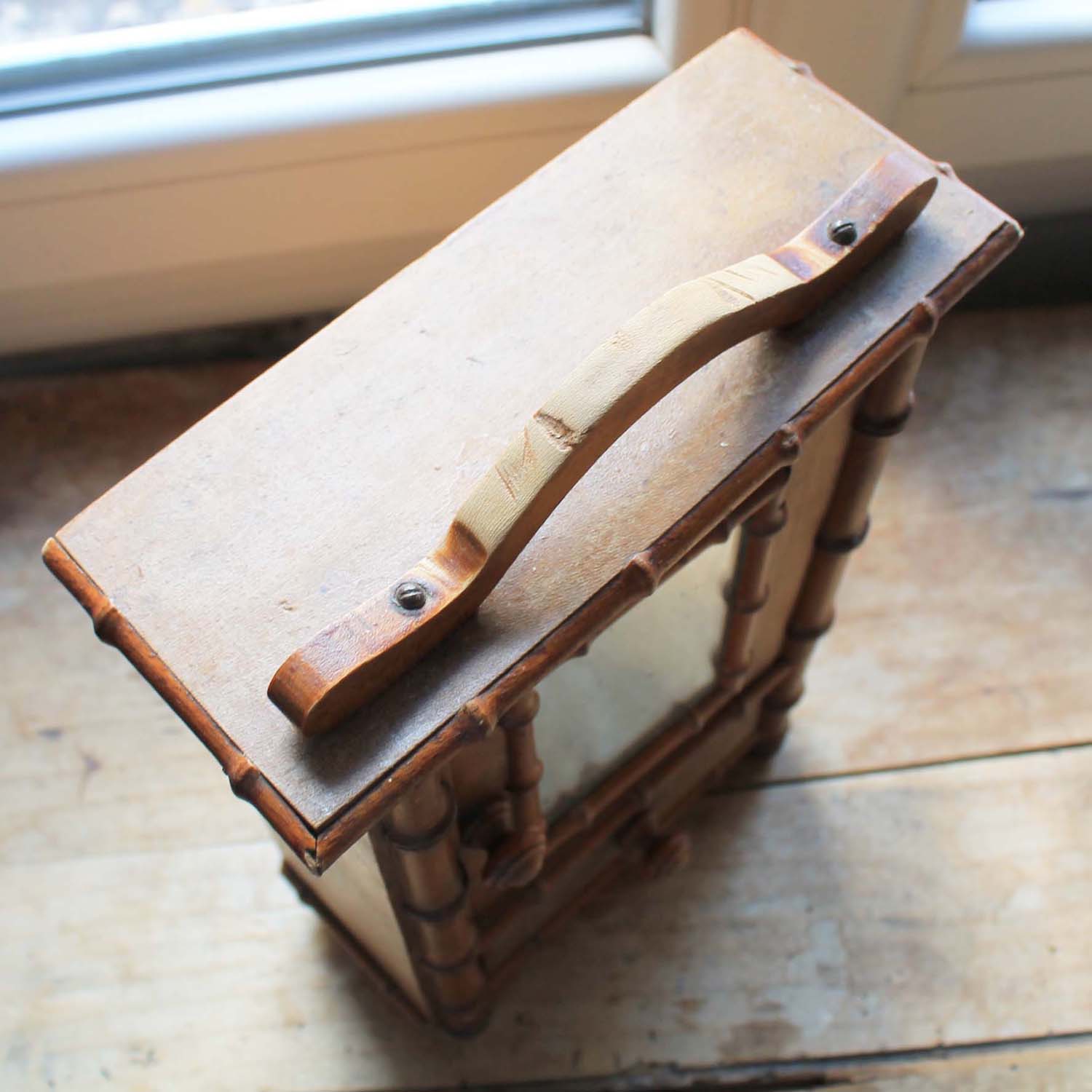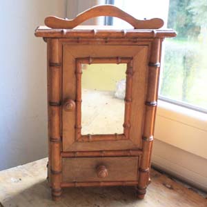 バンブーモチーフの古いおもちゃのワードローブ。古いものなので傷、汚れがありますが、鏡にダメージはありません。