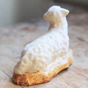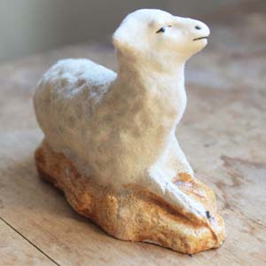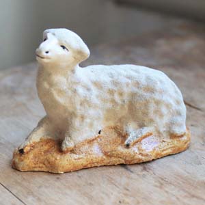 100年近く前の古い石膏製の羊。クリスマスのクレッシュに使われるものです。古いものなので多少の傷、汚れがあります。