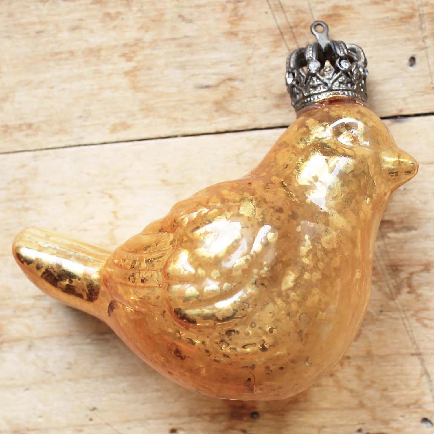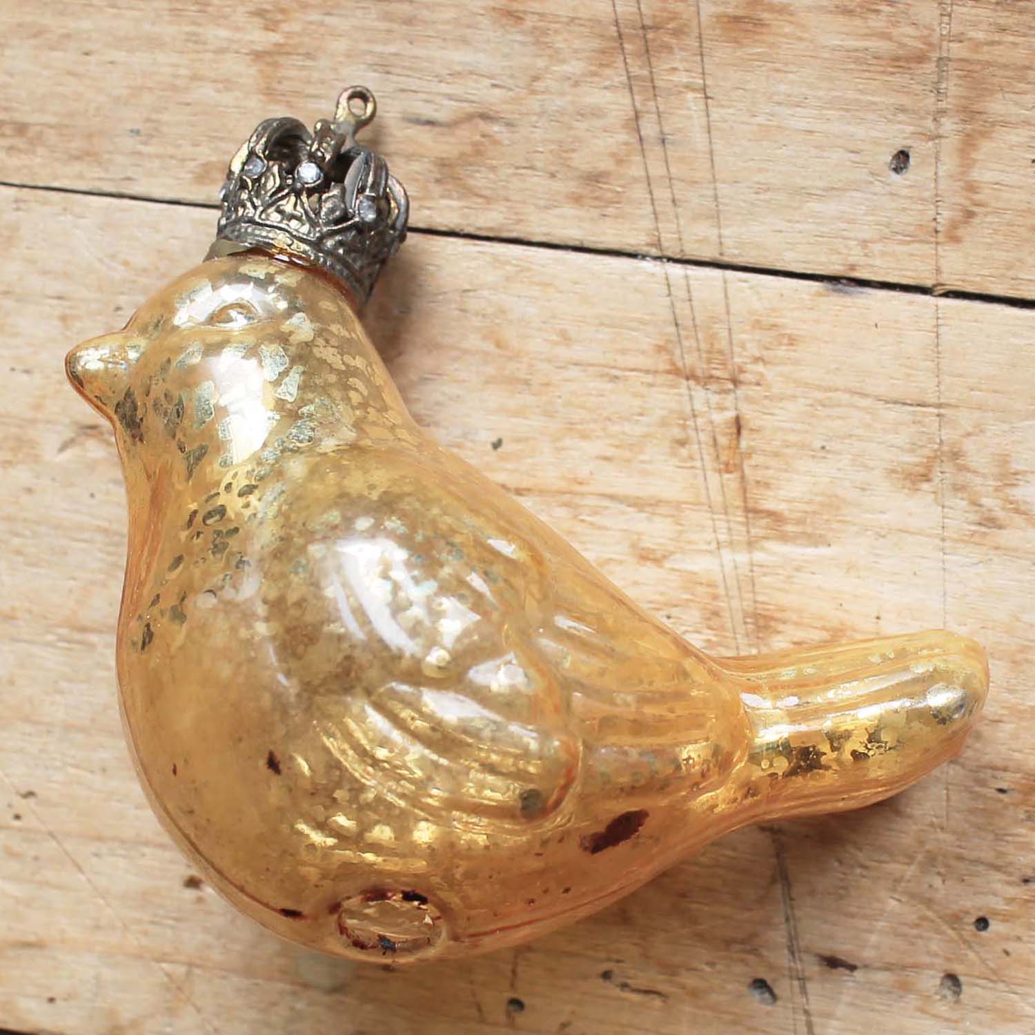 ヴィンテージの古いマーキュリーグラスのオーナメント。クリスマスツリー用です。王冠は金属製になります。