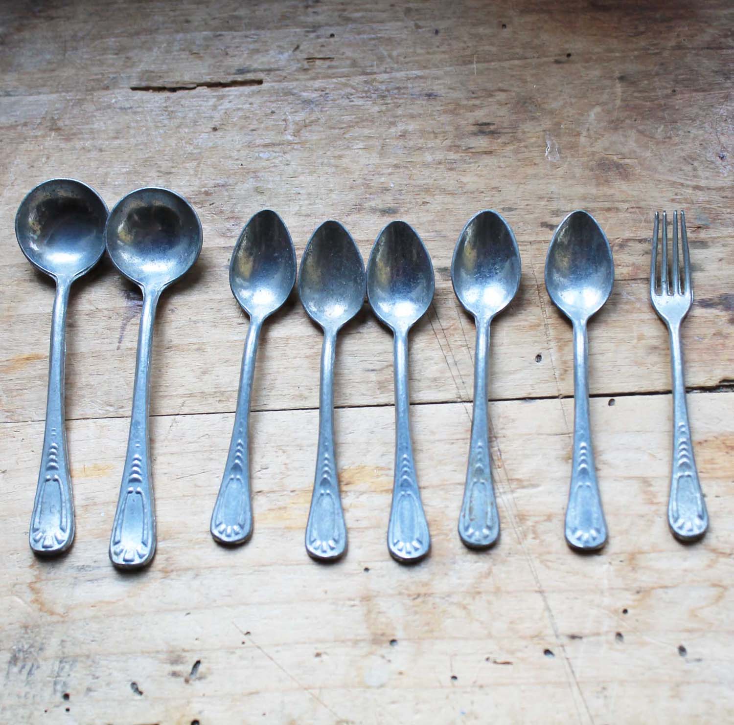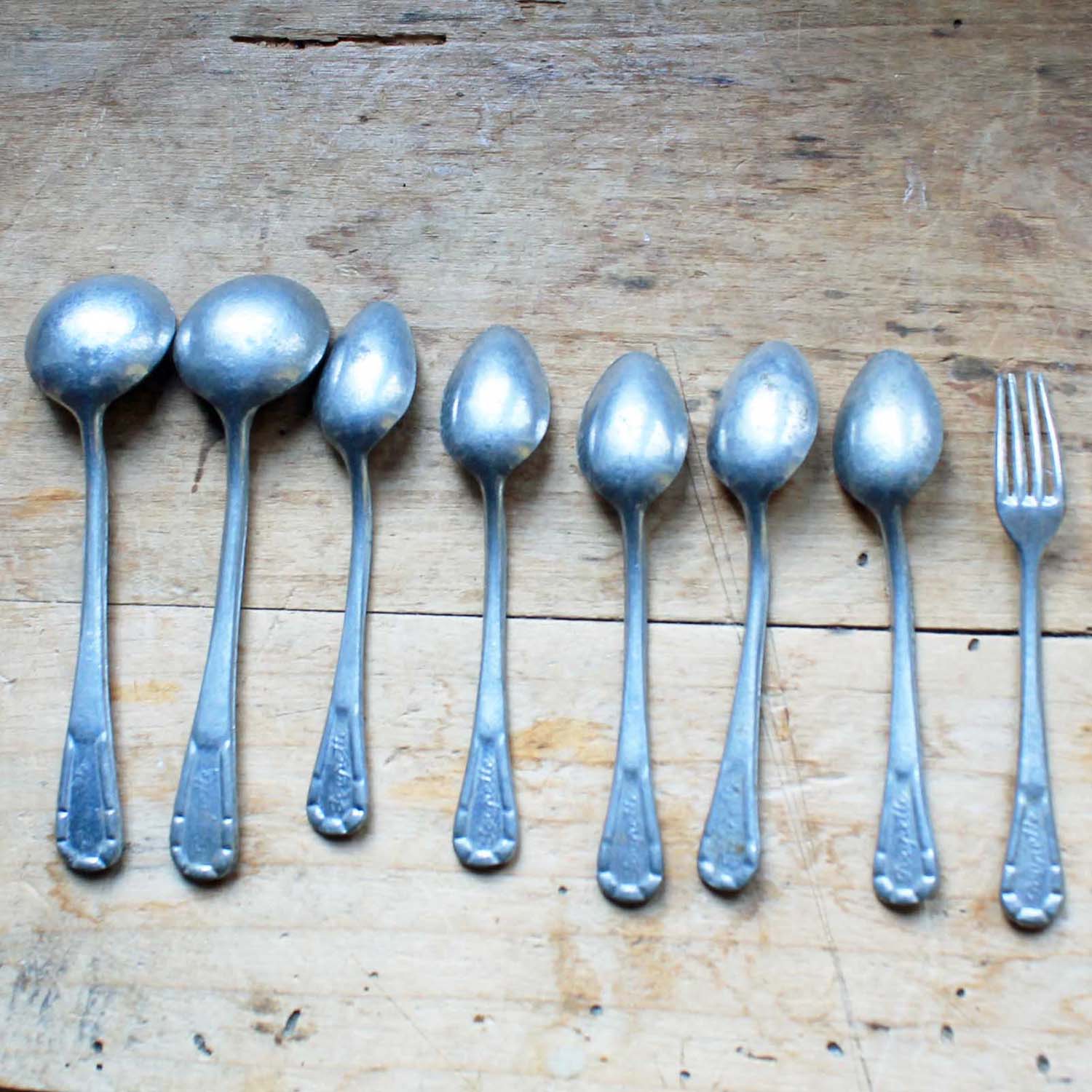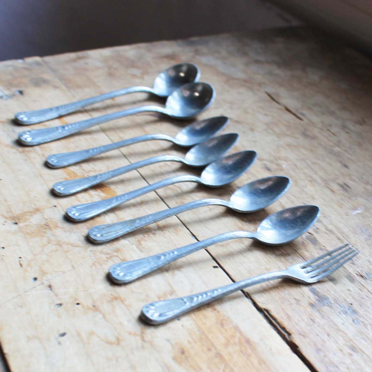 【商品番号】T260023 【商品名】19世紀後期 ピューター製 おもちゃのカトラリーセット X8